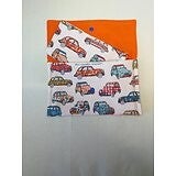 serviette double face : 1 face imprimé voiture ,1 face uni orange