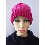 bonnet brillant au crochet avec pompon en fausse fourrure .