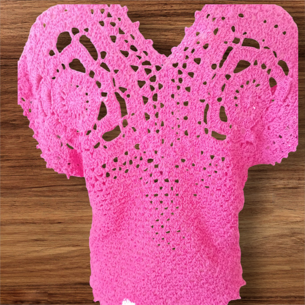 Magnifique blouse en fil de coton et rayon au crochet ,lui procure cet effet légèrement brillant orné de carrés granny .Ce porte en toute circonstance.