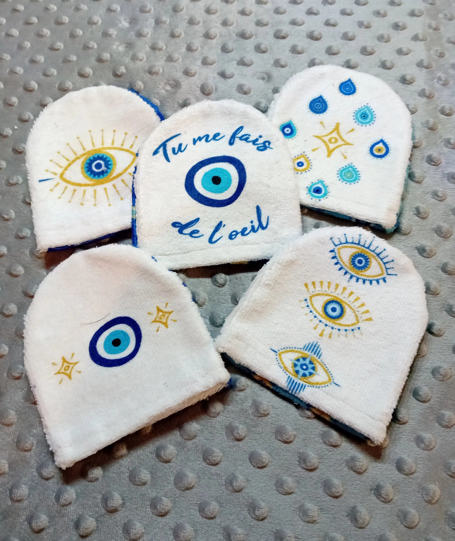 Lot de 5 mini gants démaquillant fabriqué par Les Aiguilles.